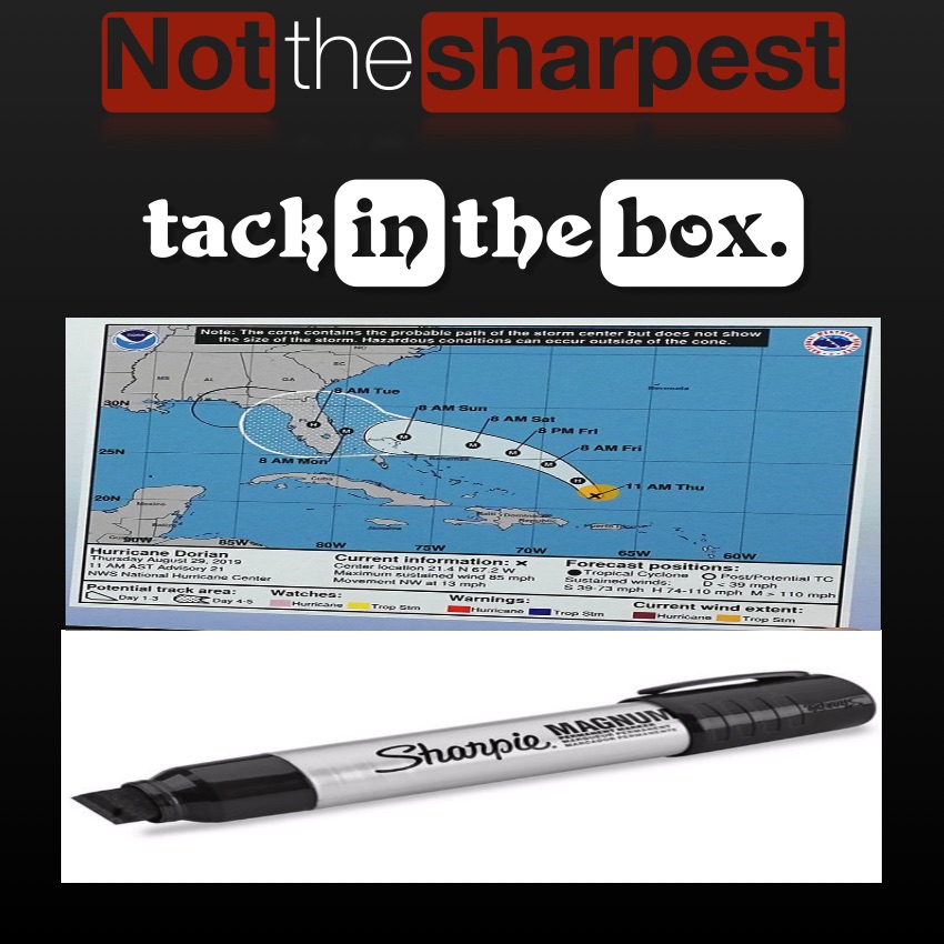 The IDEA, the general notion, the concept and the IMAGE that should be firmly planted in your mind of what the take away is from the story of Trump taking a SHARPIE and extending the area of the possible path of Hurricane Dorian IS Trump simply can’t be TRUSTED to do what is in the best interest of AMERICA and the American people.