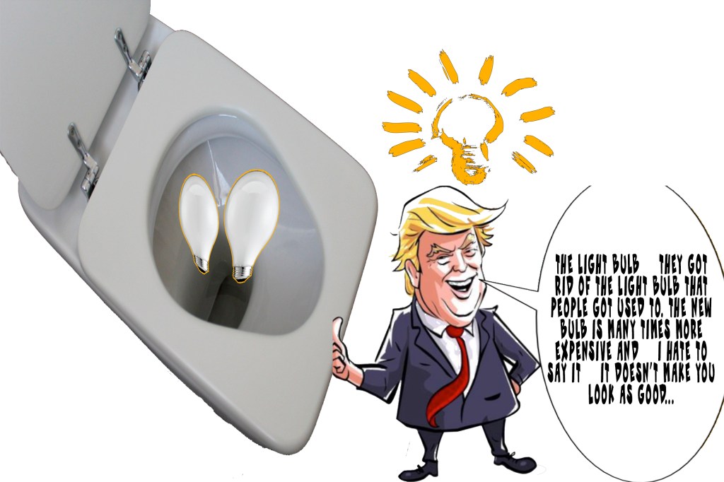 The light bulb — they got rid of the light bulb that people got used to. The new bulb is many times more expensive and — I hate to say it — it doesn’t make you look as good. Of course, being a vain person, that’s very important to me. It’s like — it gives you an orange look. I don’t want an orange look. Has anyone noticed that? So we’ll have to change those bulbs in at least a couple rooms where I am in the White House. … We have a situation where we’re looking very strongly at sinks and showers. And other elements of bathrooms — where you turn the faucet on, in areas where there’s tremendous amounts of water, where the water rushes out to sea because you could never handle it — and you don’t get any water. You turn on the faucet and you don’t get any water. They take a shower and water comes dripping out, just dripping out, very quietly, dripping out. People are flushing toilets 10 times, 15 times, as opposed to once. They end up using more water. So EPA is looking at that very strongly, at my suggestion. You go into a new building, or a new house or a new home, and they have standards where you don’t get water. You can’t wash your hands practically, so little water comes out of the faucet. And the end result is you leave the faucet on and it takes you much longer to wash your hands. .. For the most part. you have many states where they have so much water, it comes down — it’s called rain. They don’t know what to do with it. … A lot of things we do are based on common sense. If I didn’t get elected you wouldn’t have a steel industry. … We weren’t going to have a steel industry.