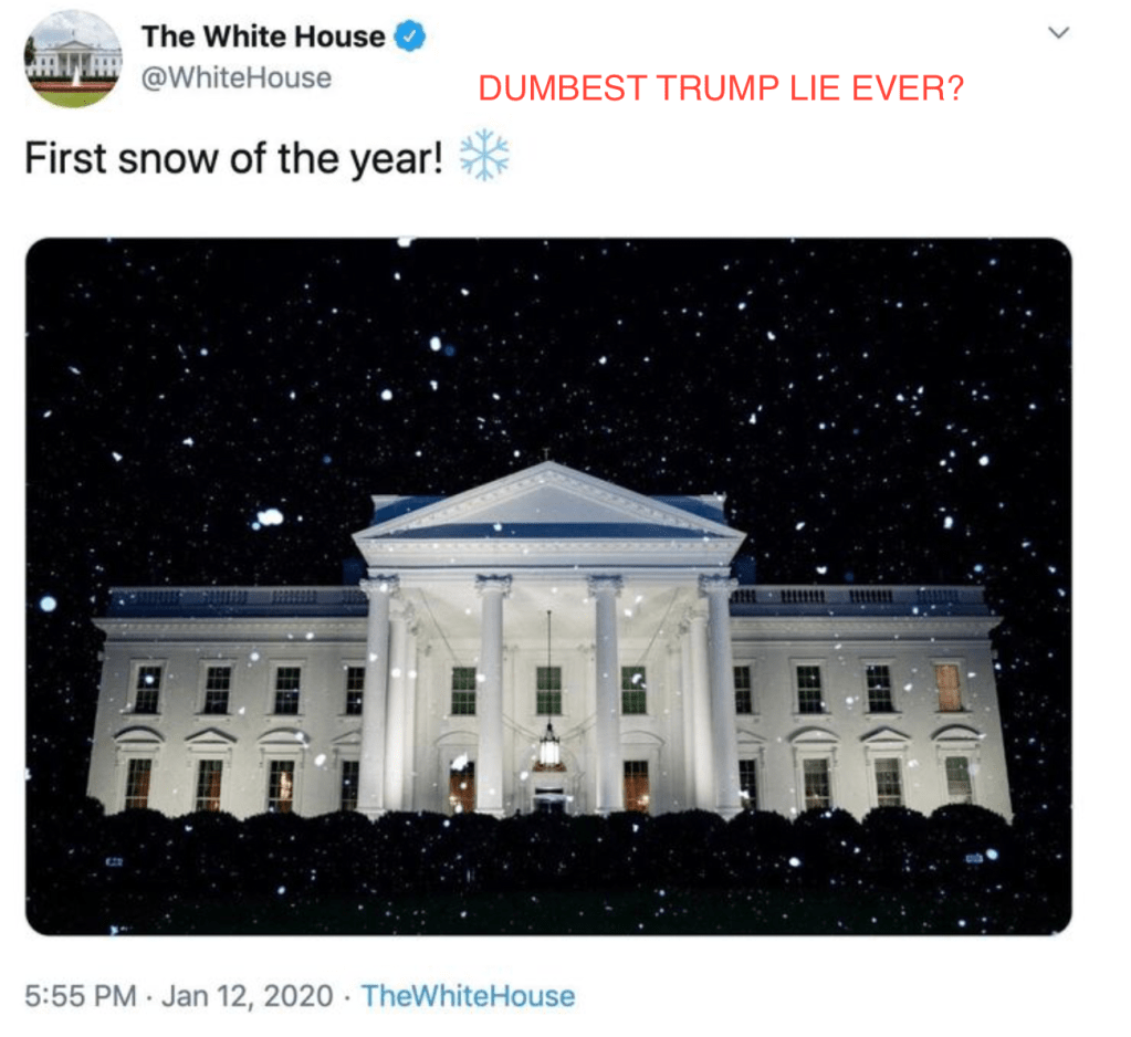 The White House of President Donald Trump is coming under fire Sunday after a tweet that critics are already slamming as the “dumbest” lie of 2020.