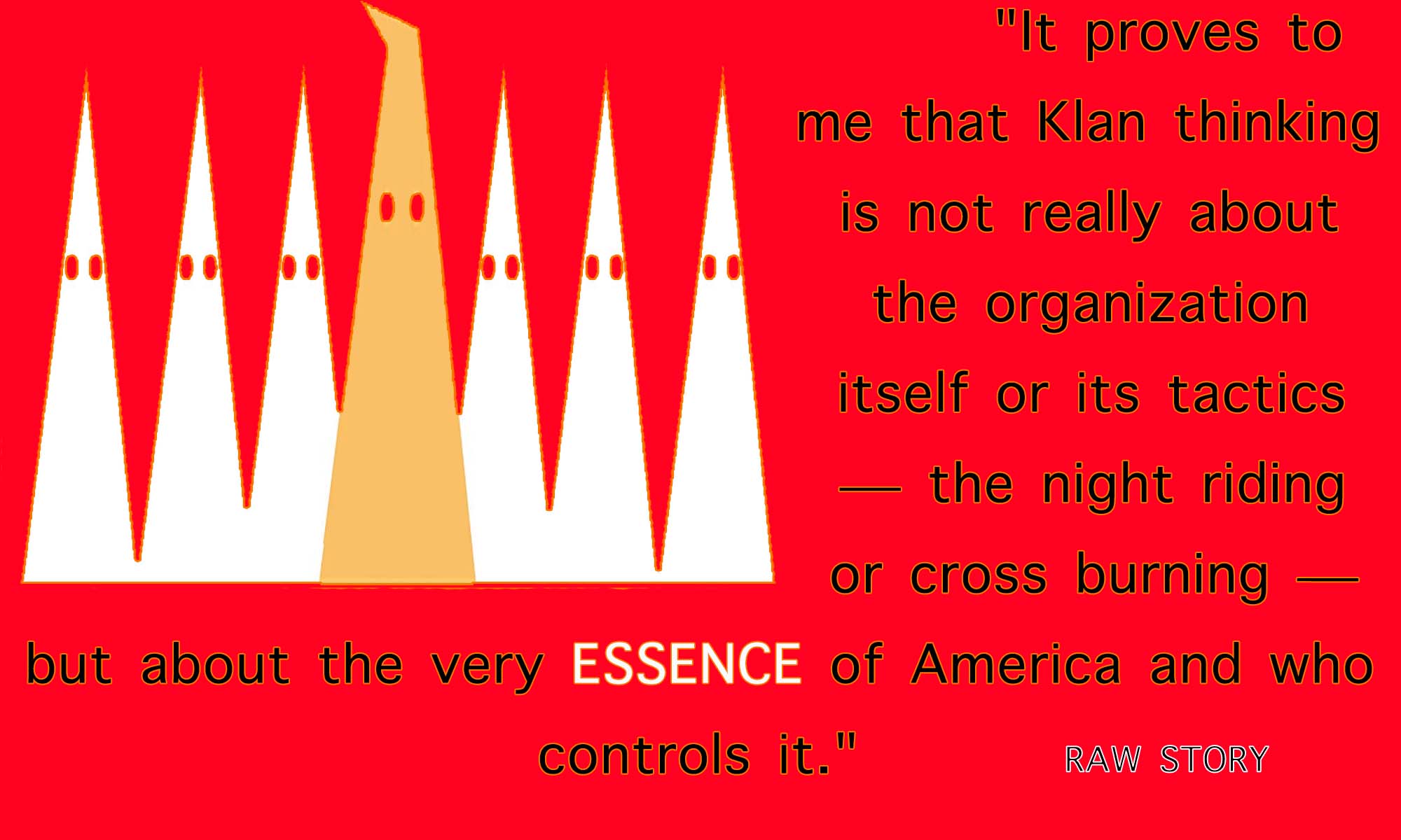 “It proves to me that Klan thinking is not really about the organization itself or its tactics — the night riding or cross burning — but about the very meaning of America and who controls it.”