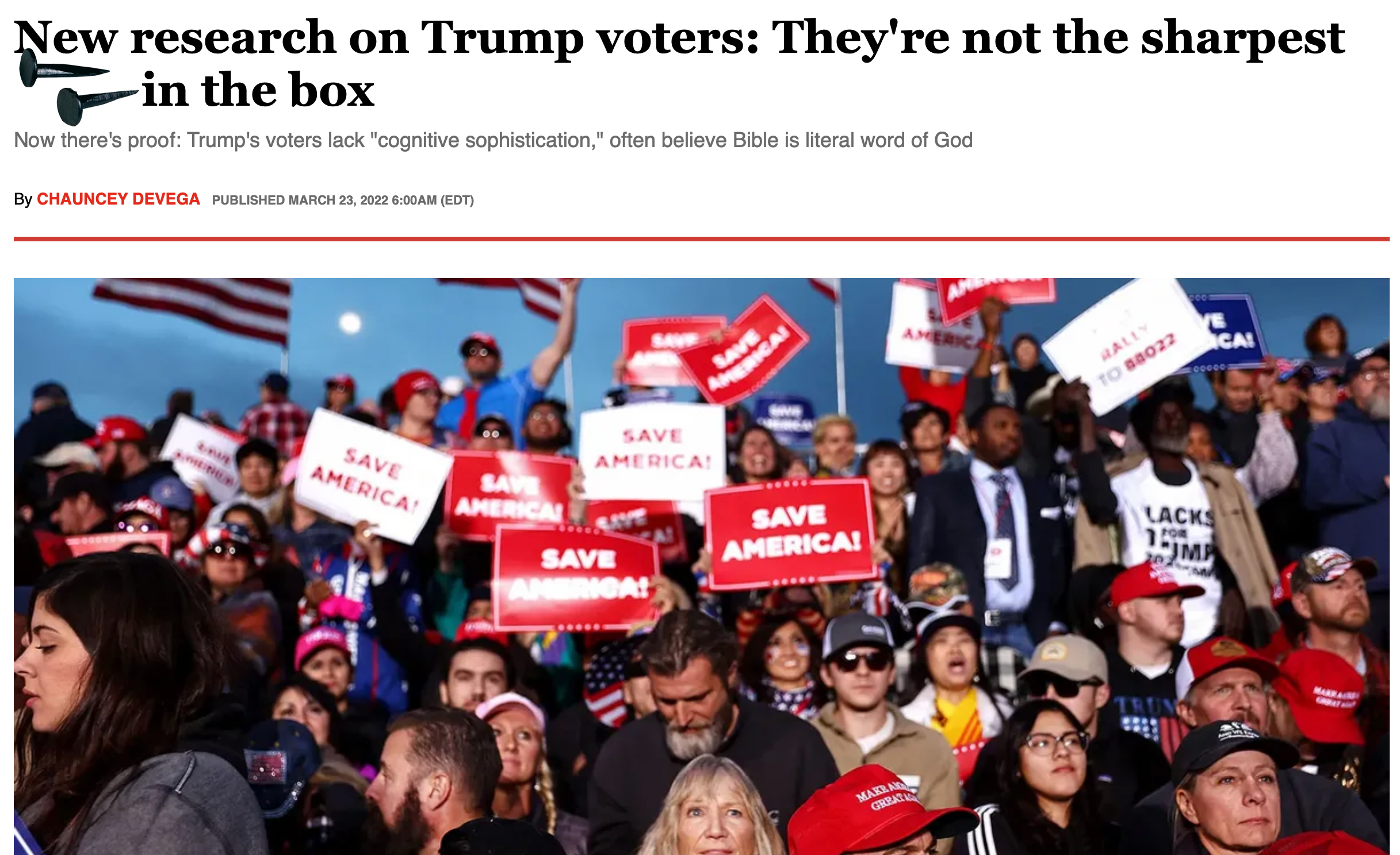 Now there’s proof: Trump’s voters lack “cognitive sophistication,” often believe Bible is literal word of God