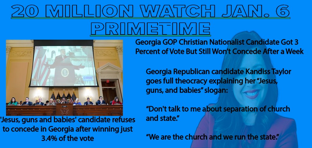 In Georgia’s 2022 GOP gubernatorial primary, one of the candidates was even more extreme than former Sen. David Perdue: Christian nationalist and far-right conspiracy theorist Kandiss Taylor, whose campaign theme was “Jesus, guns and babies.” Taylor campaigned on ridding Georgia’s government of Satanic influence, winning only 3.4 percent of the vote when the primary was held on May 24. But Taylor, in true MAGA fashion, is claiming that the election results are false — and in order to prove it, she is asking Georgia residents to sign notarized affidavits saying that they voted for her.