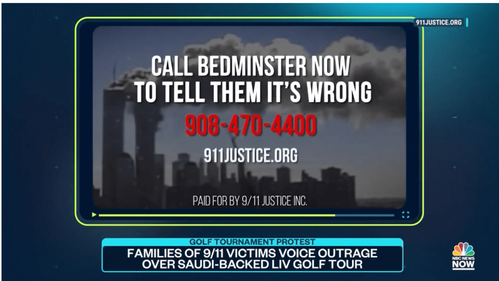 The group 9/11 Justice released a 30-second ad this week rebuking the tournament for being held “50 miles from Ground Zero” and accusing golfers participating in the contest of accepting “blood money.”
