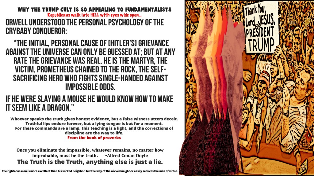 Most Trumpists call themselves “conservative,” which used to signify a belief in limited government, low taxes, free trade and freedom of conscience, but which under Trump signals tribal loyalty and revenge. This explains what some see as the central paradox of the MAGA movement, that a congenital braggart who pretty much embodies what Christianity has traditionally called the Seven Deadly Sins—greed, lust, envy, sloth, gluttony, pride and wrath—has come to seem the embodiment of faith for millions of Republican evangelicals.