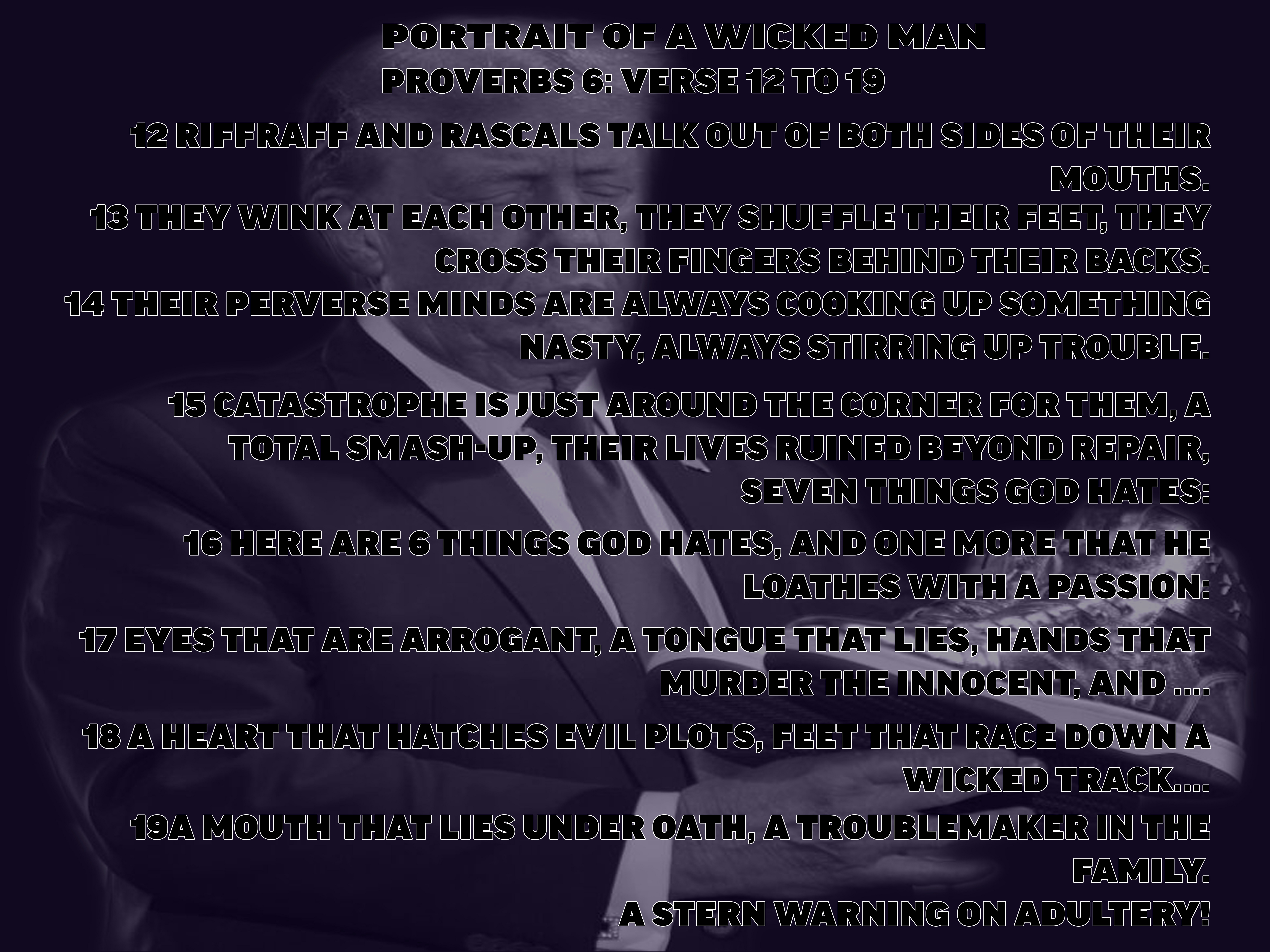 Proverbs 6:16-19 says: “These six things the Lord hates, yes, seven are an abomination to Him: a proud look, a lying tongue, hands that shed innocent blood, a heart that devises wicked plans, feet that are swift in running to evil, a false witness who speaks lies, and one who sows discord among brethren.”